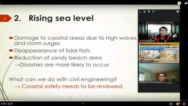 ![]() 2022/3/1-8 KU(カセサート大学),AIT(アジア工科大学院大学)ならびにKU(スラナリー工科大学)と Global PBL(オンライン)を実施しました
